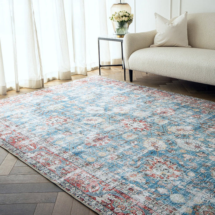 Этот классический ковер красного, синего и оранжевого цветов добавит нотку цвета в ваше жилое пространство.