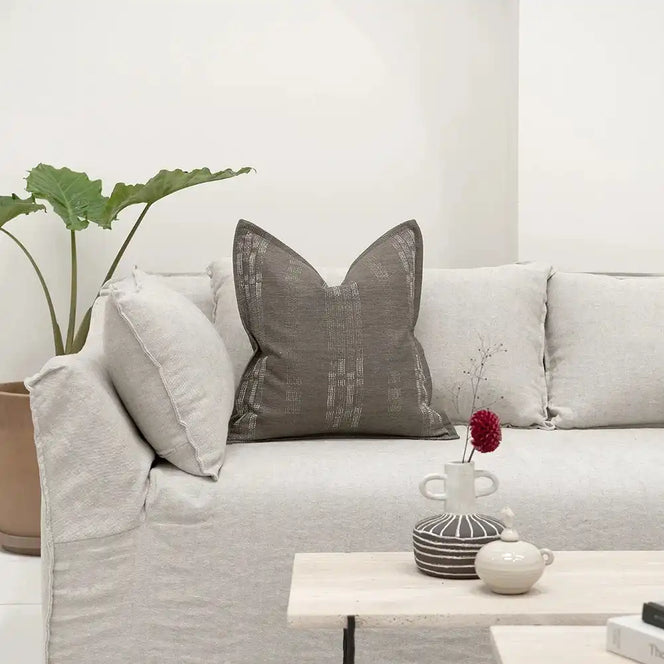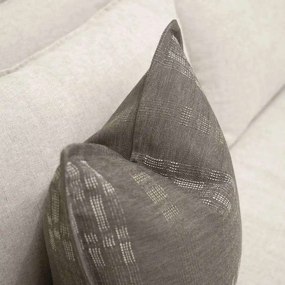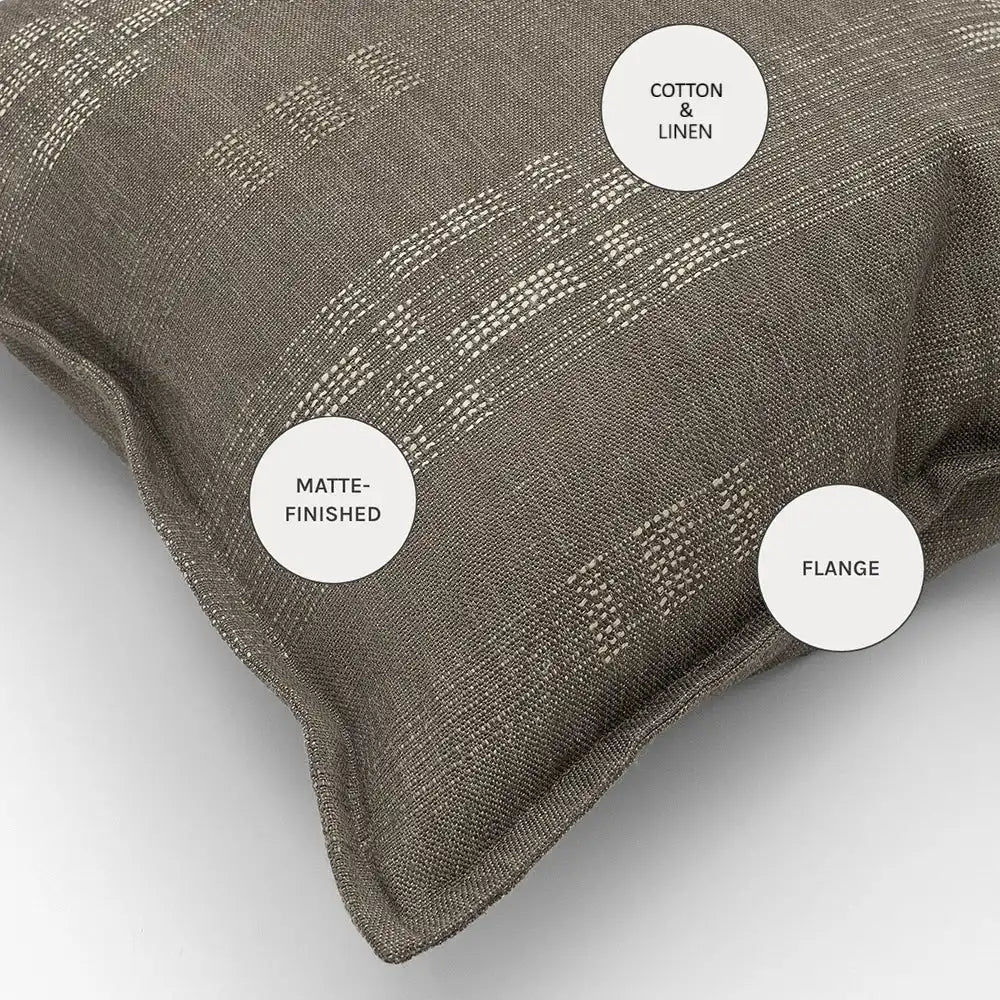Эта нейтральная подушка обладает яркой индивидуальностью. Подушка цвета тауп украшена неровными пунктирными линиями кремового и бежевого цветов, которые создают ощущение движения и оживляют ваш диван.