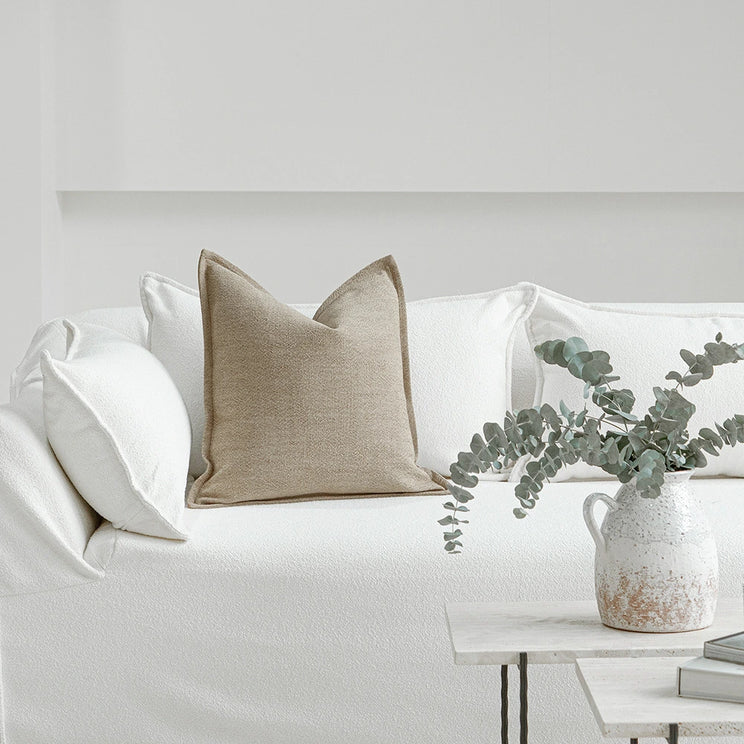 Изящная подушка, выполненная из высококачественного натурального льна, отличается мягкостью и органичным ощущением на ощупь, а также создает расслабленную, но в то же время изысканную атмосферу. Ее оттенок находится между землисто-бежевым и теплыми, приглушенными нейтральными тонами, создавая сбалансированный цвет, который кажется одновременно универсальным и утонченным.