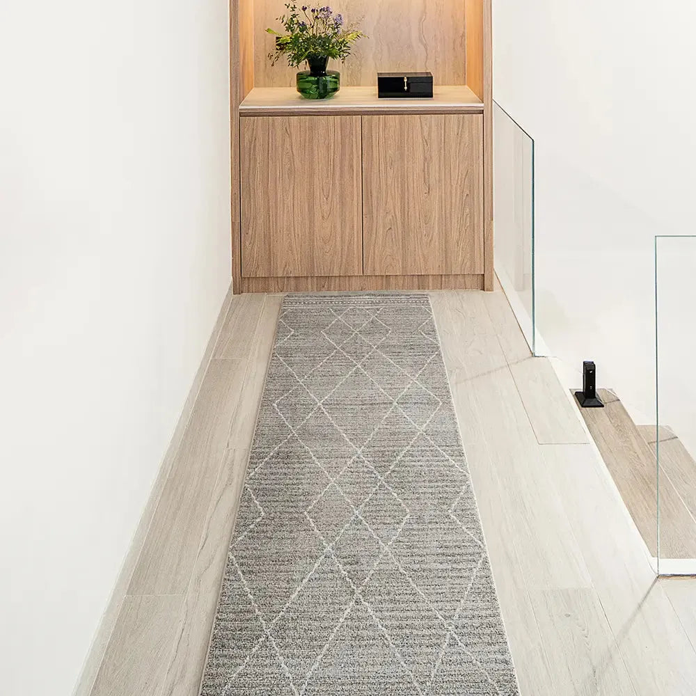 Серый ковер в зигзагообразную ромбовидную полоску